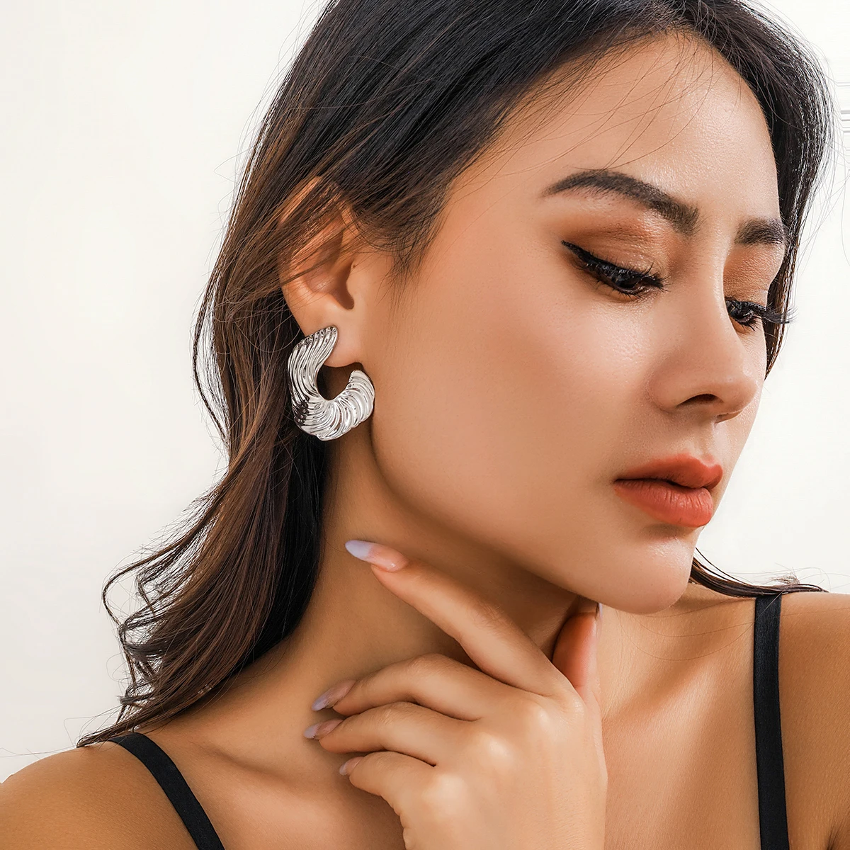 Ingmark-Boucles d'Oreilles Géométriques Vintage en Forme de C pour Femme, Piercing Créatif en Métal,